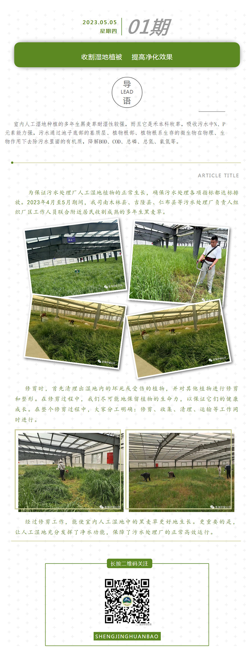 開(kāi)展人工濕地植物修剪工作